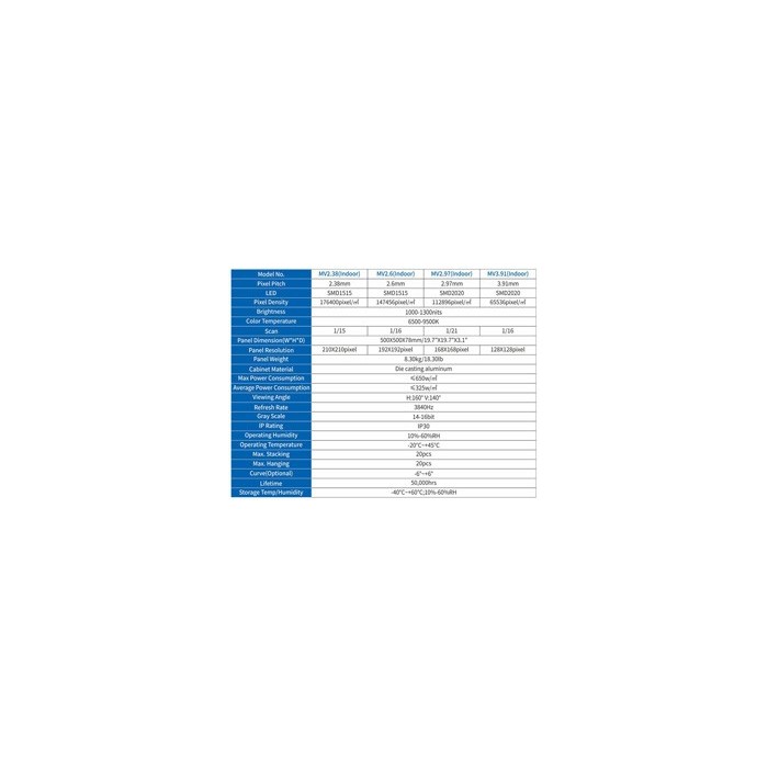 Pitch : 2.9 mm (Indoor Haute Performance).