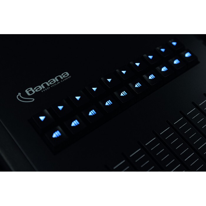 La Banana Wing permet aux opérateurs de disposer de 20 faders de lecture supplémentaires, de deux univers et de 100 accessoires de plus par rapport à la Chimp.